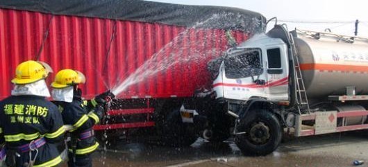 3日上午8時05分,319國道福建省章州市南靖縣靖城順利加油站旁,一部載有14.8噸汽油的油罐車撞向停靠在路邊的貨車,導致油罐罐體破裂,車上汽油發(fā)生泄露,情況危及。