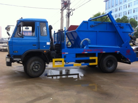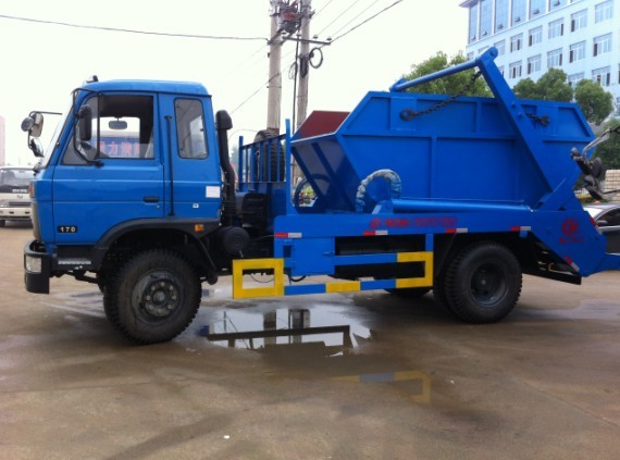 東風145擺臂式垃圾車,東風經典平頭一排半駕駛室,加厚高強度前保險杠,前霧燈,可調水晶大燈,廣角后視鏡,前路面視鏡,6檔變速箱帶副變速,3.6噸前橋,9噸后橋,3950mm軸距,9.00-20原廠尼龍胎,中冷增壓。擺臂垃圾車的垃圾斗可吊上吊下,擺臂一次工作循環時間60s。該車的特點是垃圾斗與車體分開,能實現一車與多個垃圾斗聯合使用,循環運輸,充分了車輛的運輸能力,特別適用于短途運輸,如環衛部門對城鎮垃圾的清理、運輸等等。