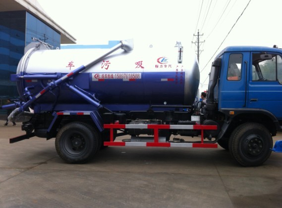 東風145吸污車,吸污車專用 部分由取力器、傳動軸、真空吸污泵、壓力罐體、液壓部分,管網系統、真空壓力表、視糞窗、洗手裝置等組成,隨車配置大功率真空吸污泵和優質液壓系統,罐體封頭一次壓鑄成型、罐體可后開、雙頂自卸。罐內污物可通過后蓋直接傾倒,具有真空度高(比吸糞車的吸力更大)、噸位大、效率高、用途更廣泛的特點性能作用。