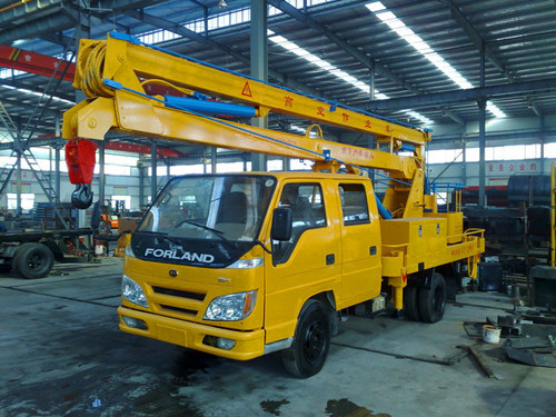 湖北隨州程力專用汽車公司高空作業車采用東風、江鈴、慶鈴、江淮、福田等原裝優質底盤,在汽車底盤上安裝了副大梁,以高強度錳鋼作為上裝主要受力結構件,以使整車受力合理,堅固耐用。
