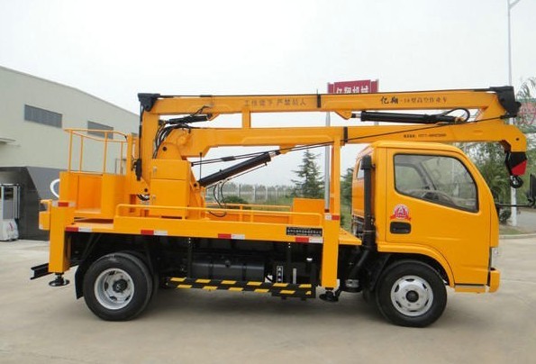 程力高空作業車選用江鈴、東風小霸王汽車底盤,采用折疊式工作臂(二節臂、三節臂),作業高度分別為12米、 14米、16米、18米,平臺額定載荷200Kg,舉升臂可360°回轉、轉臺、工作斗兩處均可操作。本產品作業結構簡單,操作方便,安全可靠,外形美觀,是安全性和工作效率最優化的高空作業設備。隨車裝配四個液壓支腿,支腿型式為H型,以保證整車在操作時的穩定性和安全性。